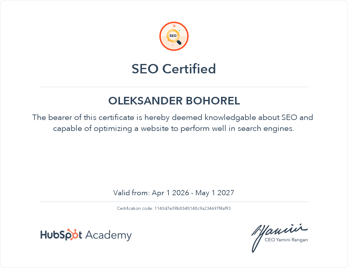 Потрібна була допомога з SEO та технічною оптимізацією сайту. Отримала чіткі поради й ефективні рішення для покращення позицій у гуглі. Дуже задоволена результатом! Рекомендую!